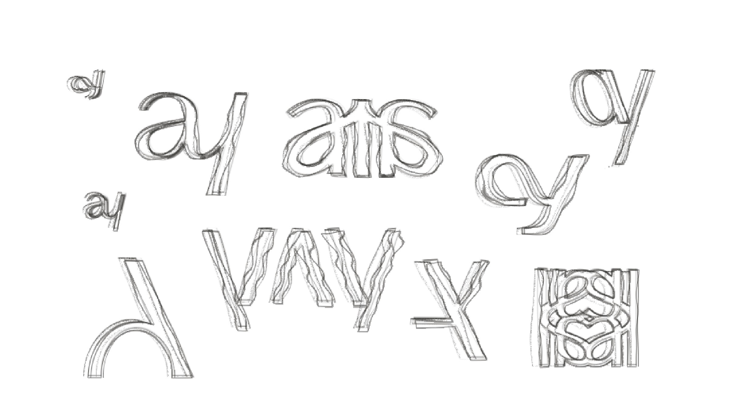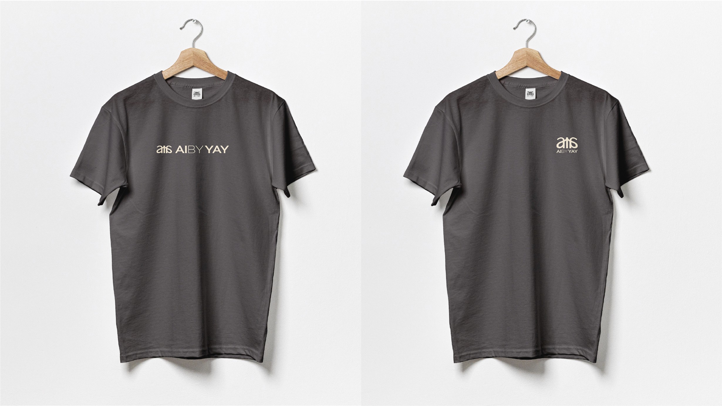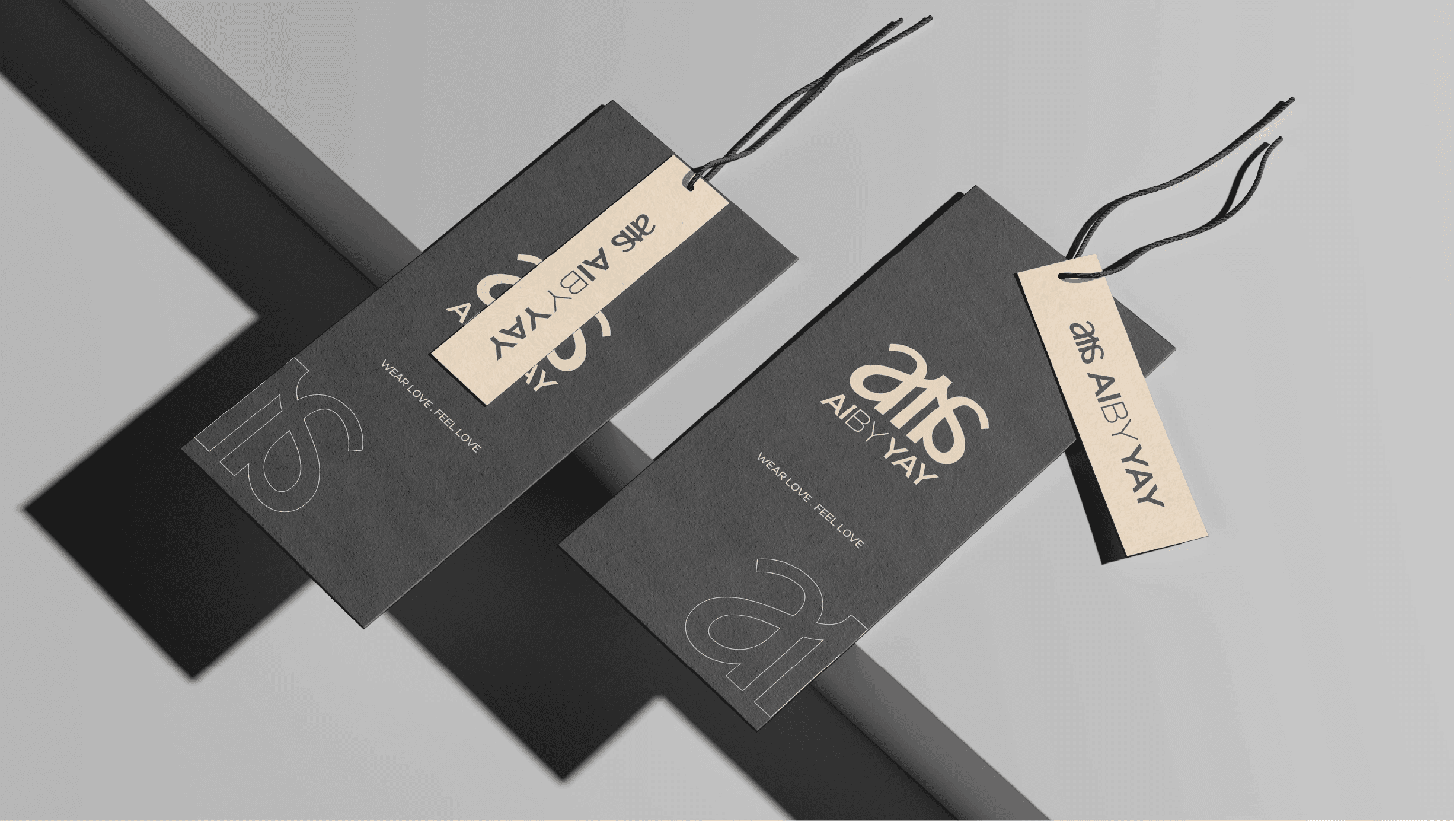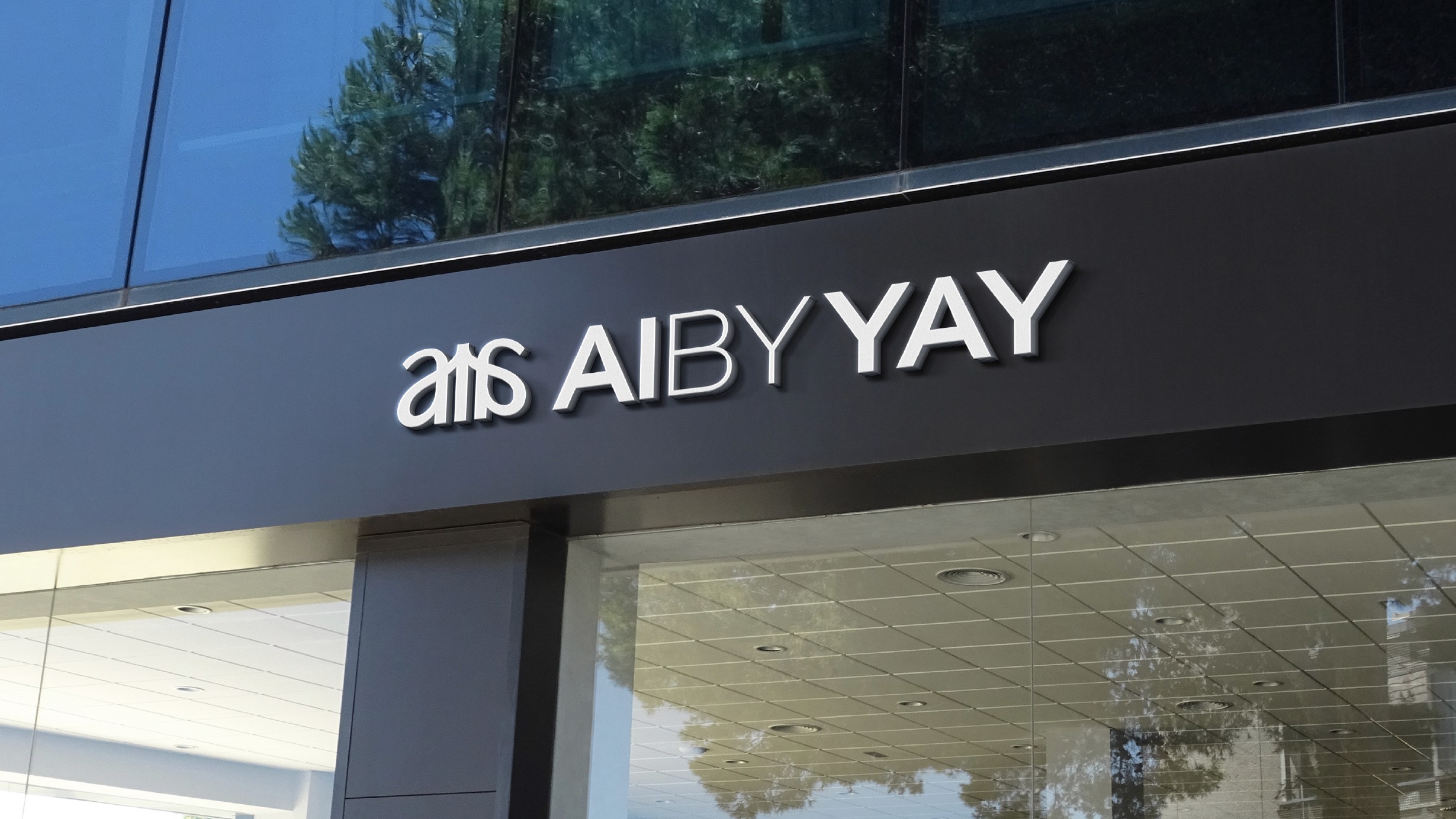 The monogram sits above the full wordmark "AIBYYAY" set in clean geometric capitals with precise spacing. The contrast between the flowing script monogram and the structured wordmark below it creates a visual tension that feels intentional and sophisticated. Expressive above, architectural below.