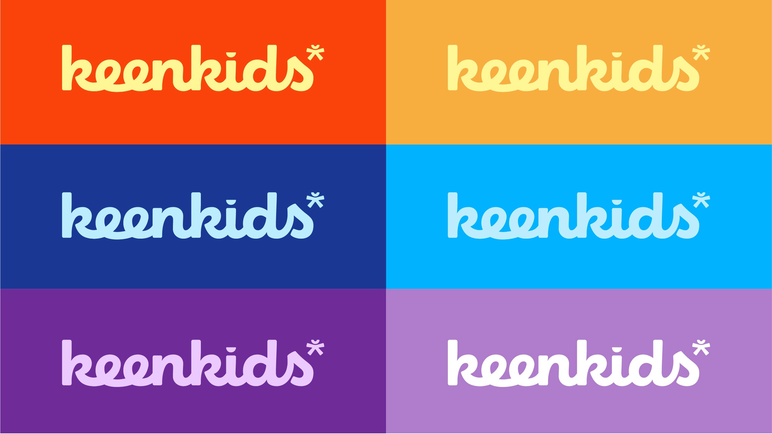 The wordmark "keenkids" sits in a clean, friendly lowercase that balances the energy of the icon with enough legibility to work across every surface from clothing tags to billboard advertising. The two elements work together without competing: the icon carries the spirit, the type carries the name.
